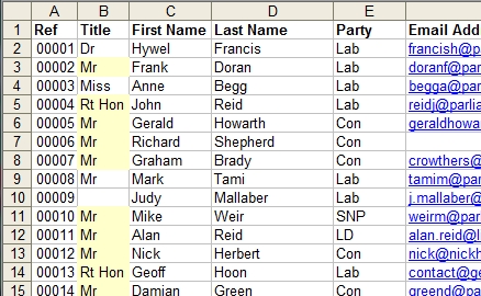 For the purpose of this document a list of names and email addresses have been compiled into an Excel spreadsheet.