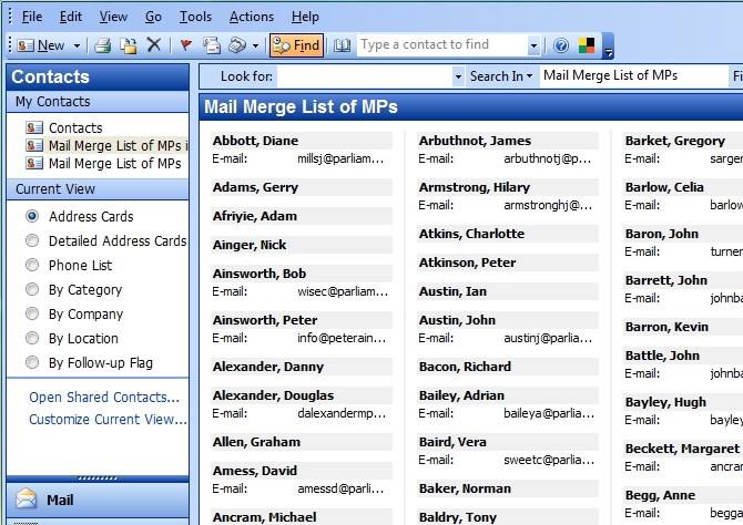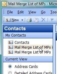 You have various options that are available to you, view your Microsoft Outlook 2003 Mail Merge documentation for full details, once you have chosen the setup that is most appropriate click on the 'OK' button.