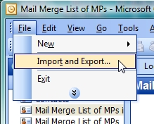 Create a new folder to store the mailing lists, by selecting the menu options 'File', 'New', 'Folder'.