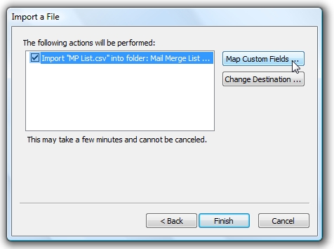 Select and drag the 'Values' that you want to use from the CSV file , displayed on the left, to the correct 'Field' of the Microsoft Office Outlook contact record on the right.
