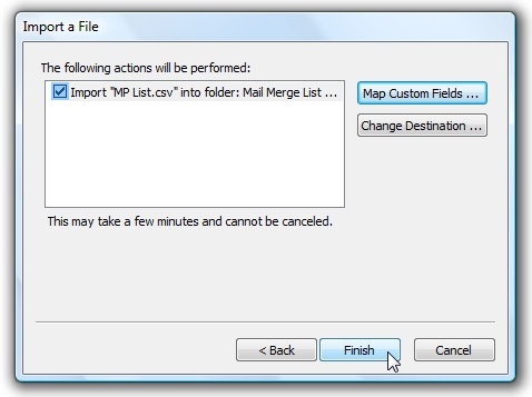 Once imported you will have a list of contacts that can then be used with the mail merge.
