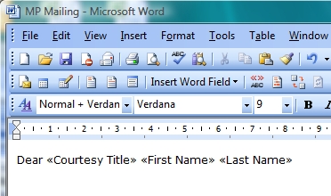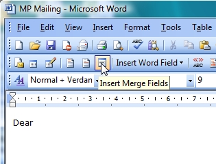To insert a variable field, position the cursor at the point in the template document you want the field to appear and then click on the 'Insert Merge Fields' button.