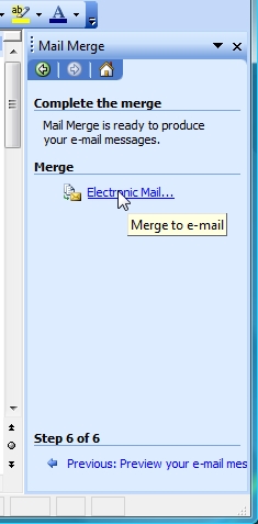 The merge will be completed differently depending on what format the final document is to take, for an email mail merge we will need to click on the 'Electronic Mail' option.